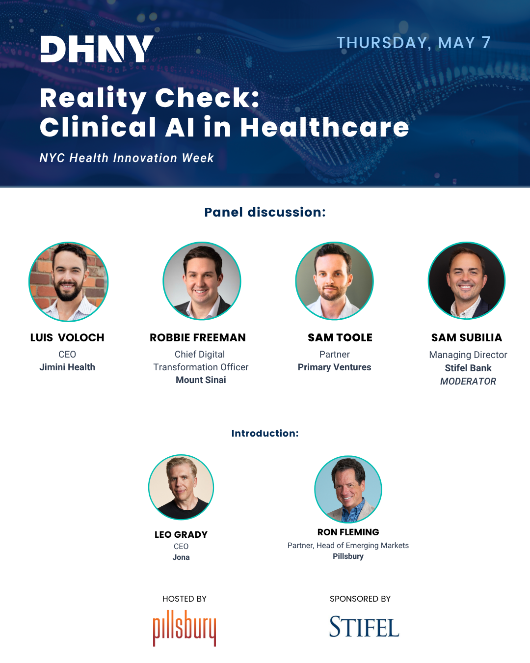 The event will bring together leading industry voices for a candid panel discussion on the hurdles and opportunities shaping clinical AI today. From reimbursement and financial visibility to patient experience and regulatory complexity, the discussion will unpack what is driving (or slowing) real adoption. Join us for an evening of content and connection at Pillsbury's midtown offices with drinks, networking and rooftop views.